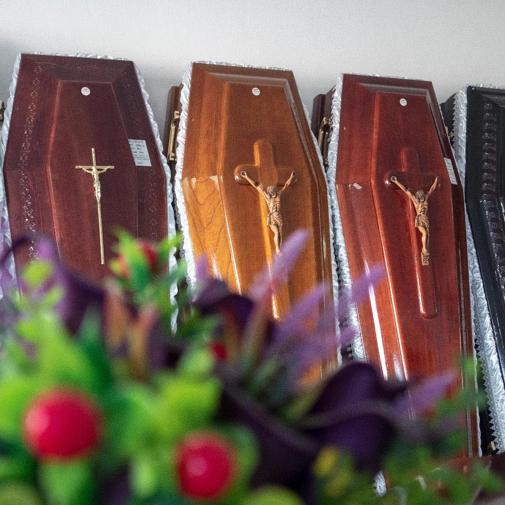 - Gama variata de sicrie, accesorii, cruci, urne si articole necesare ceremoniei.